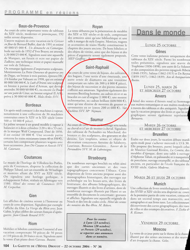 Var Matin, 22 Octobre 2009: Une vente aux enchères de prestige Dimanche