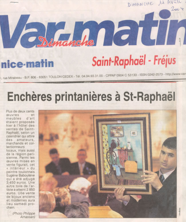 Var Matin 2006 : Tableaux et mobilier chez Me Yvos