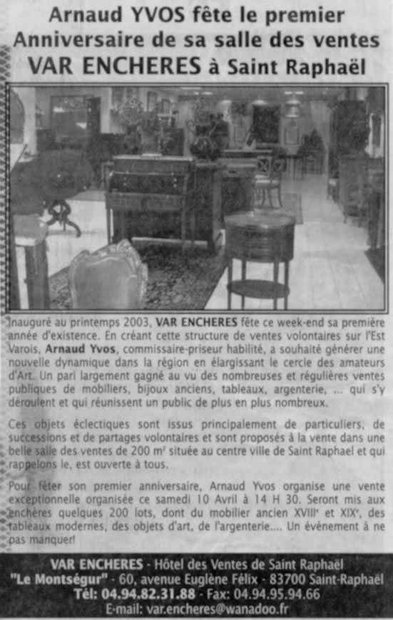 Var Matin 2006 : Tableaux et mobilier chez Me Yvos
